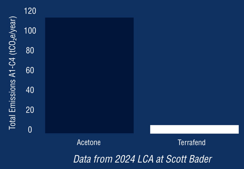 Cradle-to-grave assessment shows huge reduction in embodied carbon vs. solvents.